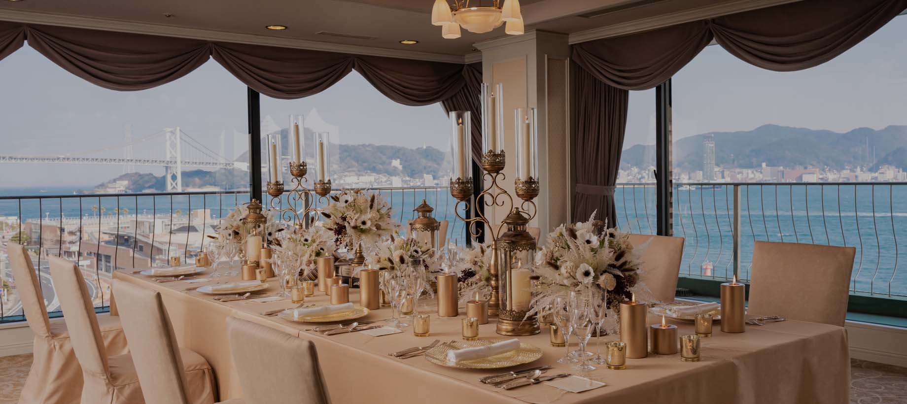 お料理と景観、五感すべてをおもてなしの世界へ。関門海峡を望める最高のロケーションと美味しいお料理でパーティーを盛り上げます。さまざまなご宴会に合わせた会場をご用意、会議からからの移行、ご宿泊まで安心してお任せください。