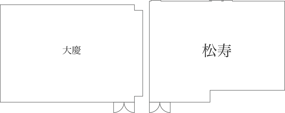ご婚礼、各種ご宴会、会議、講演会などに幅広くご利用いただける小宴会場です。シアタースタイルで最大70名収容可能です。松寿・大慶はとなりあわせに位置していますので分科会などにもご利用いただけます。