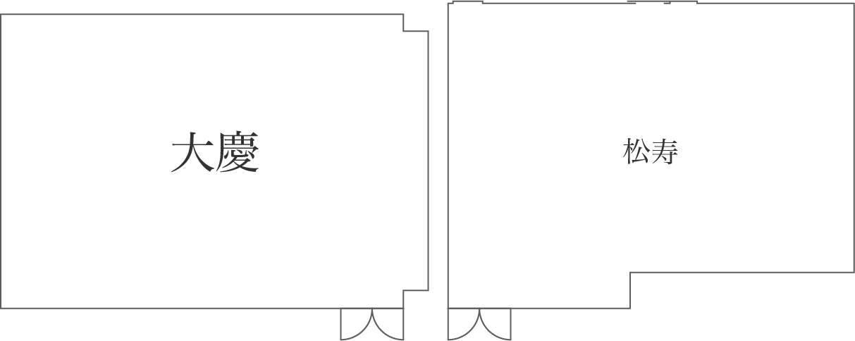 ご婚礼、各種ご宴会、会議、講演会などに幅広くご利用いただける小宴会場です。シアタースタイルで最大70名収容可能です。松寿・大慶はとなりあわせに位置していますので分科会などにもご利用いただけます。