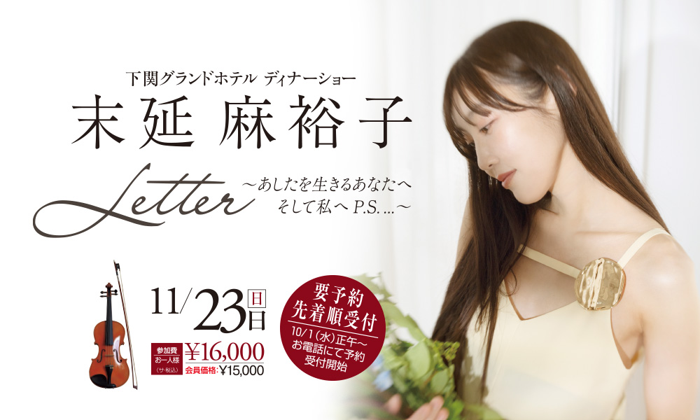 下関グランドホテル ディナーショー「末延 麻裕子 Letter 〜あしたを生きるあなたへ そして私へP.S. …〜」