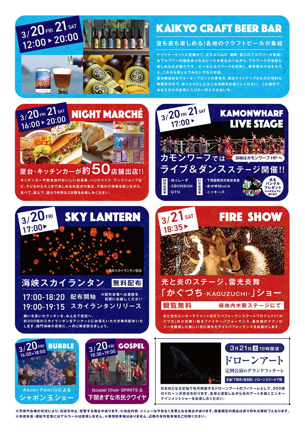 飲食・物販出店50ブース以上、カイキョークラフトビアバル、スカイランタン、大道芸・パフォーマンスなどイベント盛りだくさん!