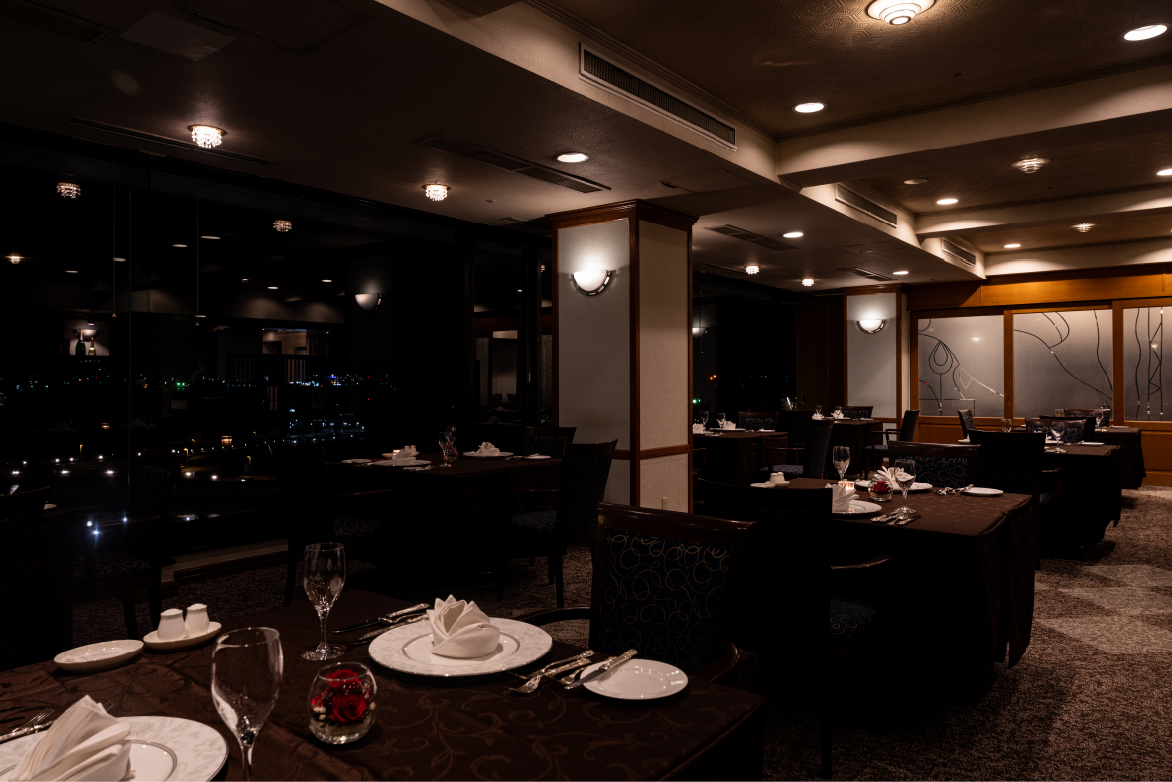 日中は明るい陽射しの元で爽やかに、夜はきらめく夜景に包まれてシックに…。