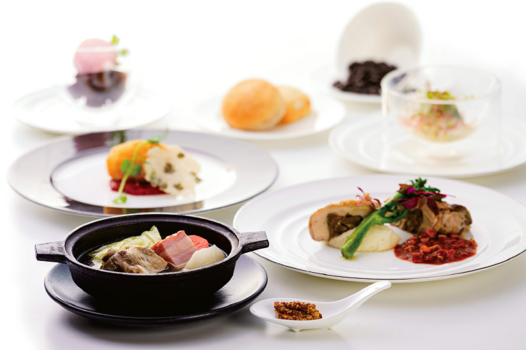四季折々の食材を贅沢に使用し、洗練された技で仕上げたフランス料理のコース。