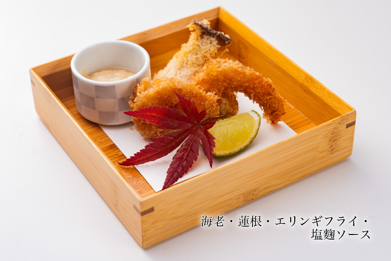 ⑸海老・蓮根・エリンギフライ・塩麴ソース【写真の料理】