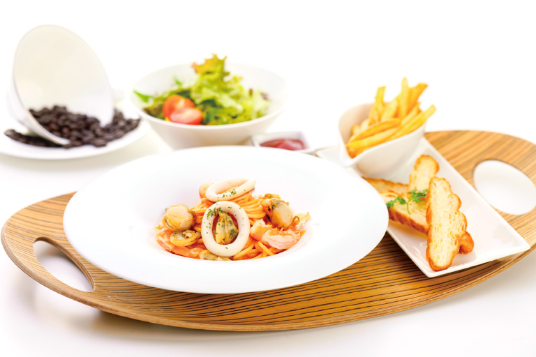 ビスクソースのシーフードハーフパスタセット