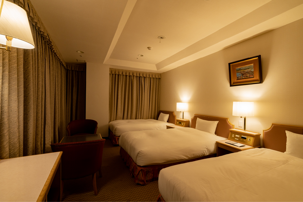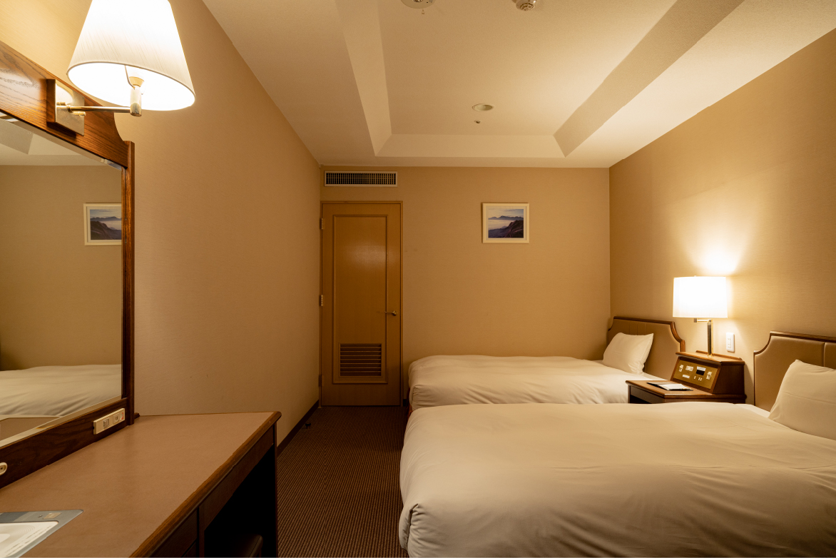 窓の外を見渡し、下関らしい穏やかな時間をお過ごしいただけるツインルーム。