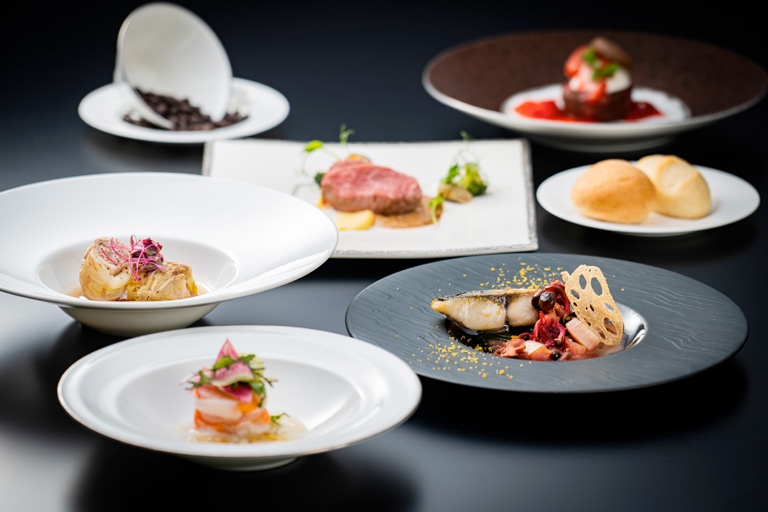 旬の海の幸や地元食材を織り込んだ、五感で味わうフレンチフルコース。